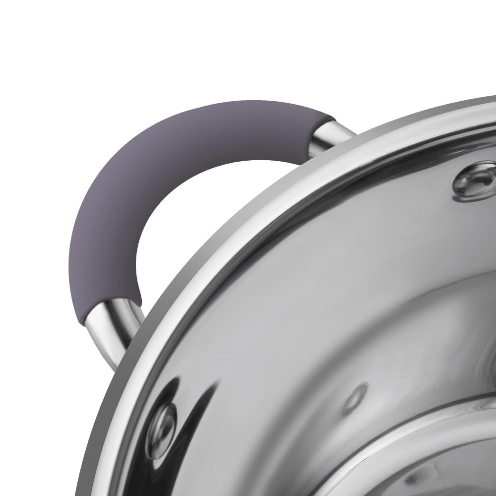 • Ручки из нержавеющей стали на заклёпках с силиконовой оболочкой имеют надежное крепление, не нагреваются, не скользят.