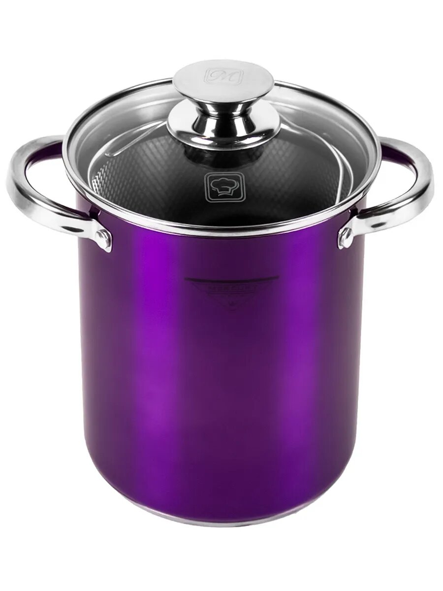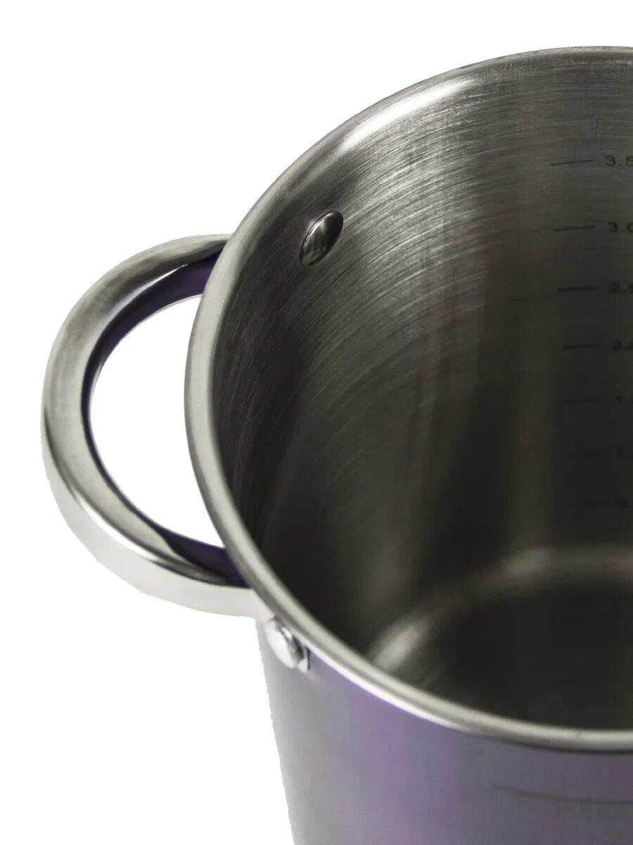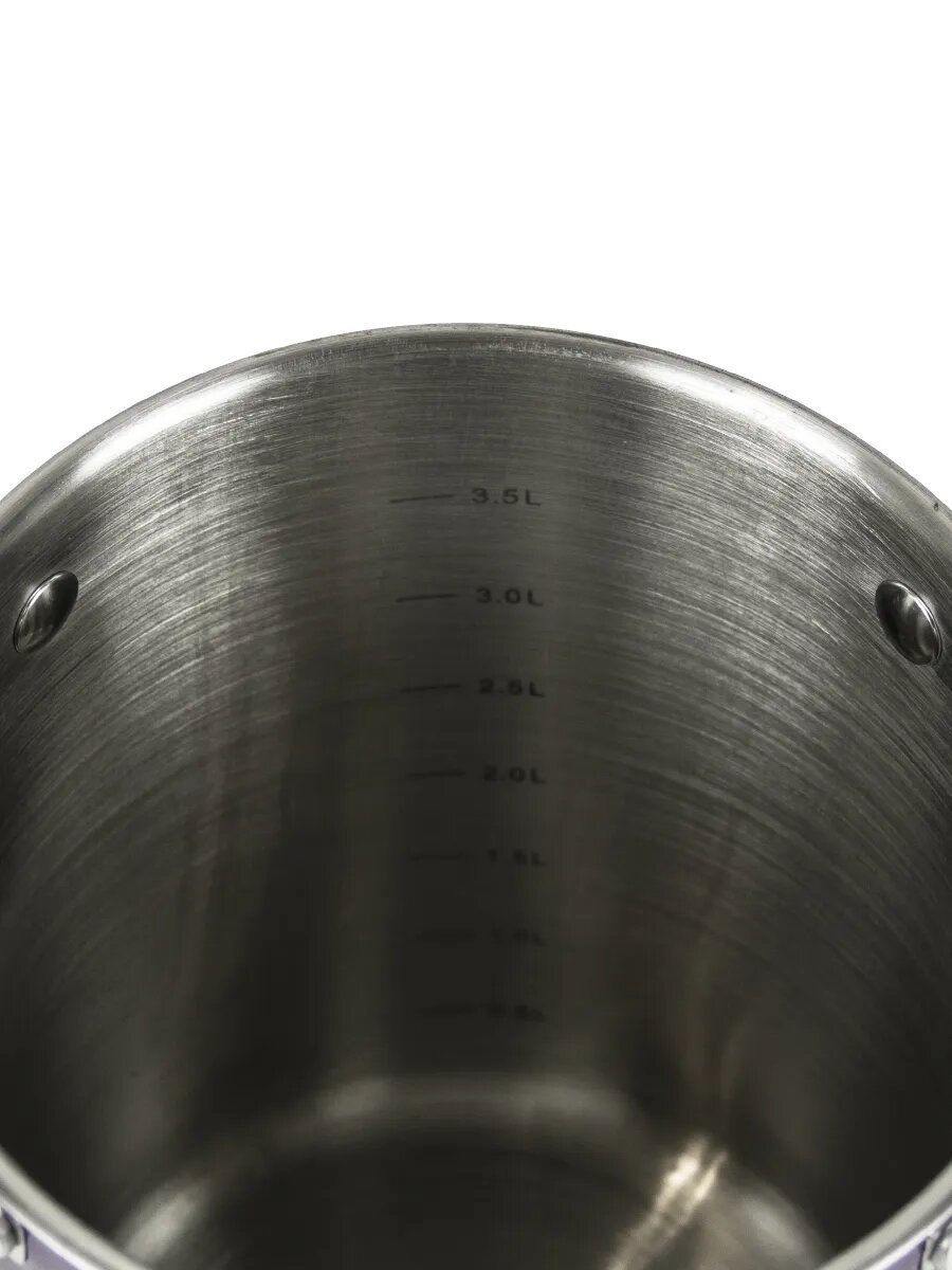 Материал: высококачественная нержавеющая сталь 18/10. Объем: 4,3 л (16*21 см). Толщина стенок кастрюли 0,5 мм. Крепкие ручки. Стальная сетка-пароварка 14*19 см. Крышка из закаленного стекла со стальным ободком с отверстием для выпуска пара. Термоаккумулирующее дно. Мерная шкала. Можно мыть в посудомоечной машине. Подходит для всех видов плит, включая индукцию.
