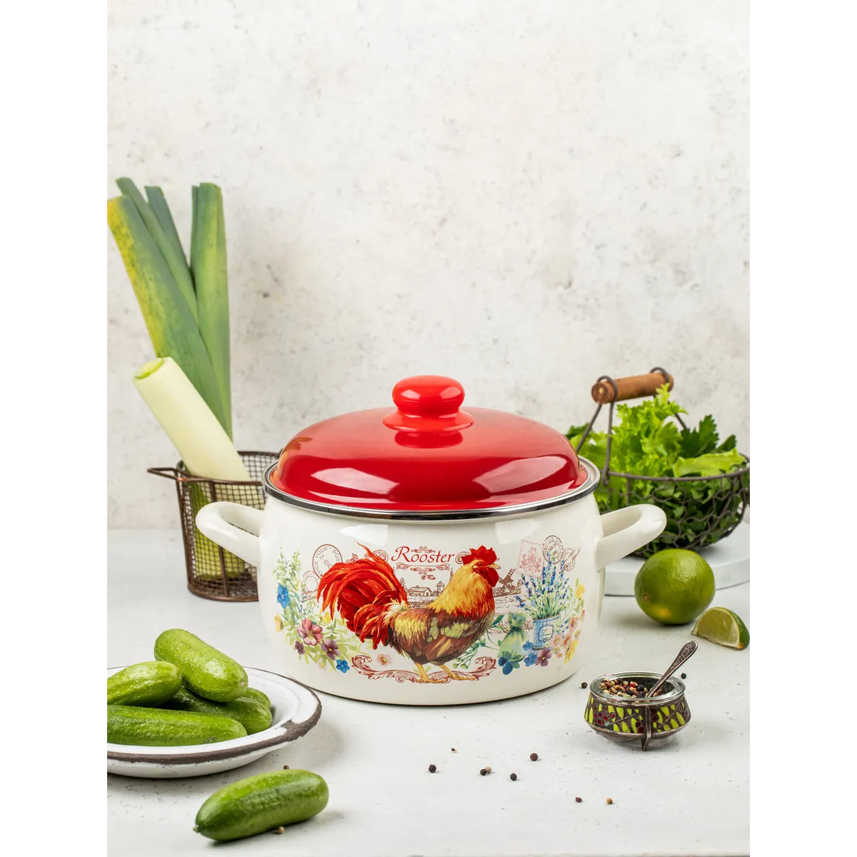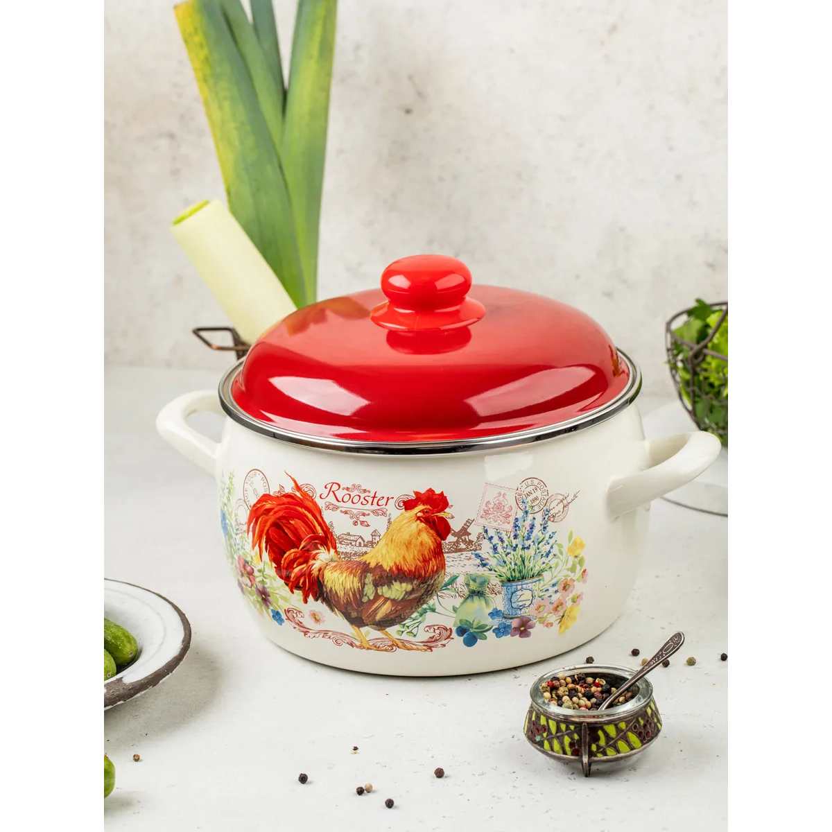 Кастрюля серии "Золотой петушок" изготовлена из стали с 3-х слойным эмалированным покрытием с обеих сторон. Эмалевое покрытие, являясь стекольной массой, не вступает во взаимодействие с продуктами питания, не искажает их вкус, надежно защищает пищу от контакта с металлом и не вызывает аллергию. Подходит для приготовления и хранения любых блюд, включая диетические. Металлическая крышка ускоряет процесс приготовления блюд. Фурнитура из термостойкого материала - бакелита - делает взаимодействие безопасным. Подходит для ВСЕХ типов плит и мытья в посудомоечной машине. Долговечна и неприхотлива в уходе.