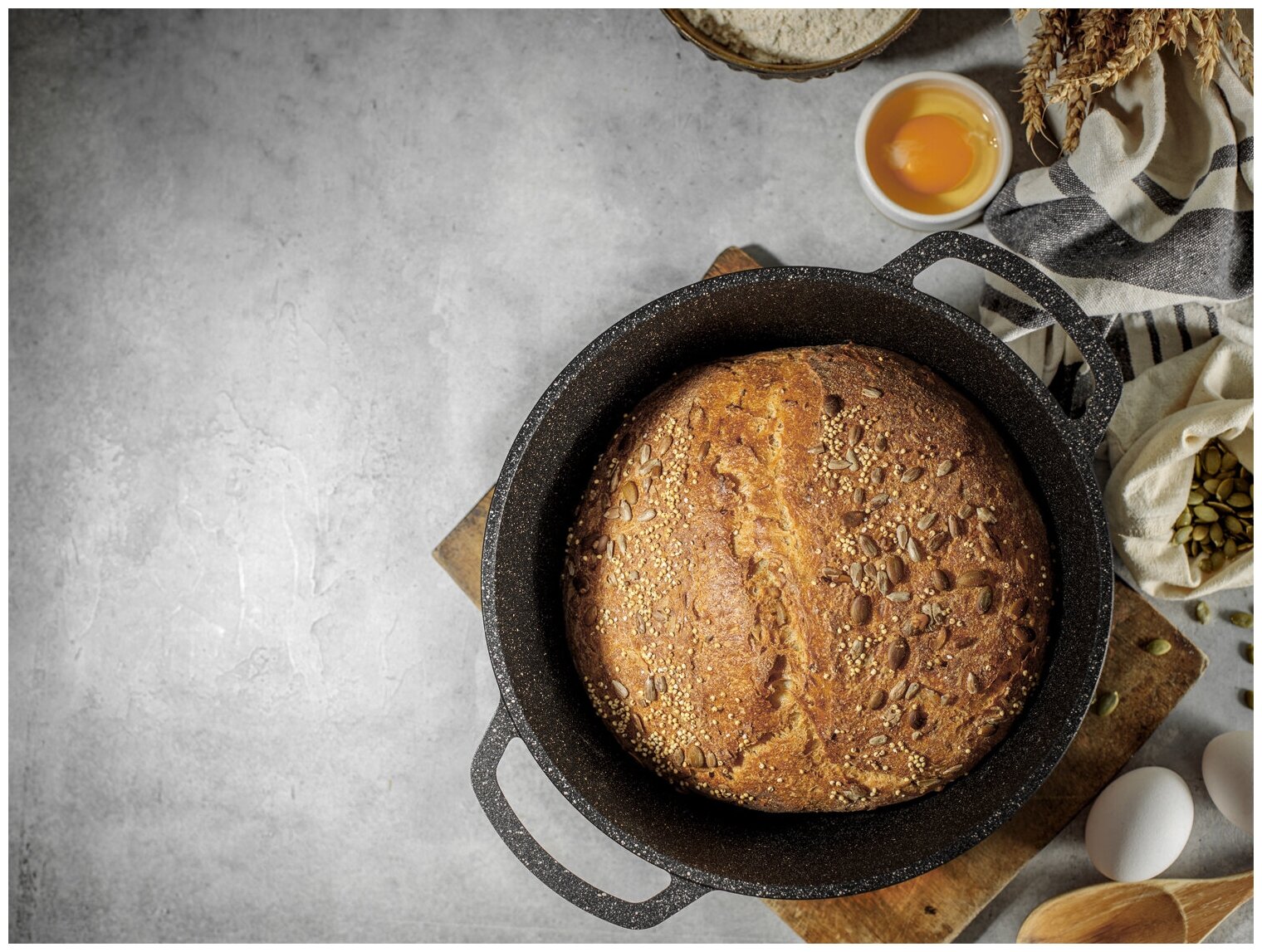 Качественное антипригарное покрытие с эффектом натурального камня Черный гранит позволяет избежать пригорания продуктов даже без использования масла. Покрытие на водно-кремниевой основе не содержит PFOA (перфтороктановую кислоту), безопасно для контакта с пищевыми продуктами, а также в производстве и для окружающей среды.