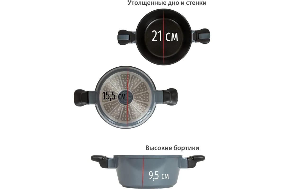 Дно равномерно распределяет тепло, что обеспечивает плавный нагрев и экономит время.