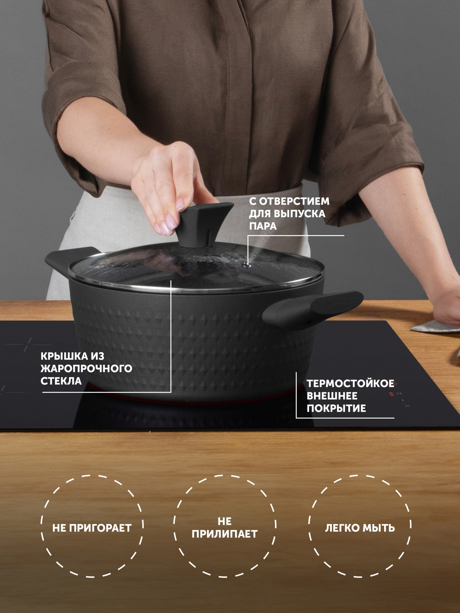 Подходит для всех типов плит Есть