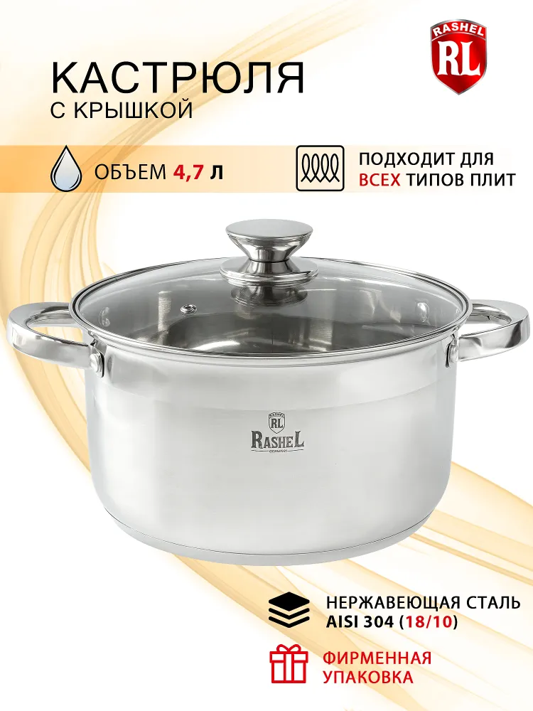 Кастрюля 4,7 л из нержавеющей стали со стекл. кр., 22 х13 см