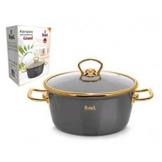 Кастрюля RASHEL 2.6 л, эмалированная, со стеклянной крышкой, ручка золото, графитовая R0820 предназначена для приготовления пищи.