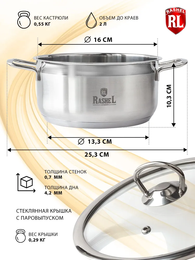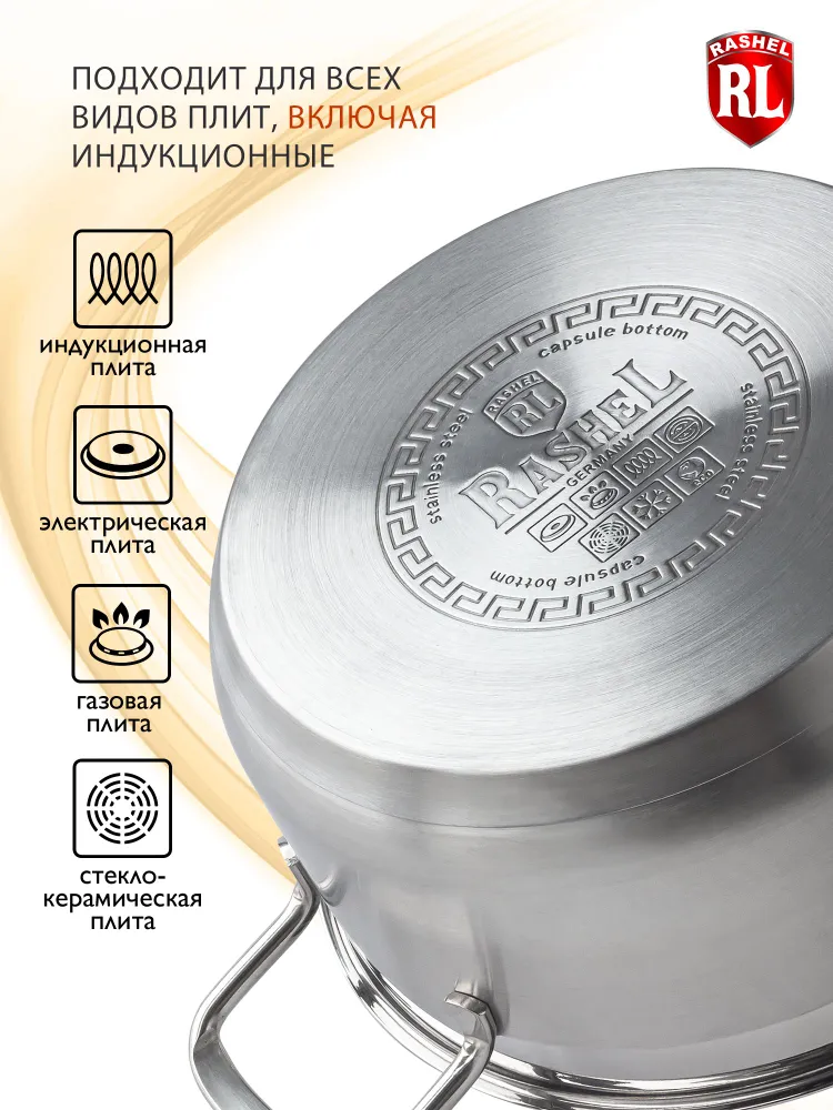 Совместимые плиты: Для газовых плит, Для стеклокерамических плит, Для электрических плит, Для индукционных плит