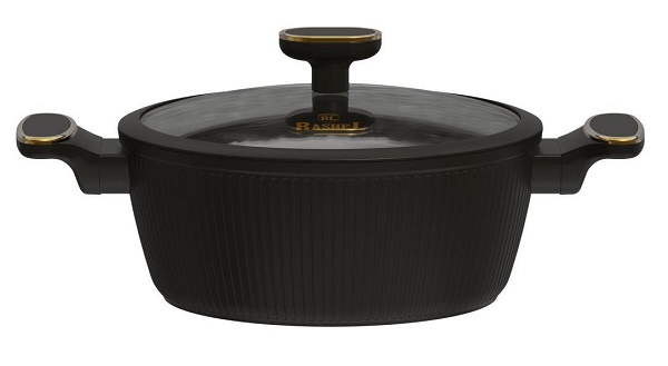 Кастрюля а/п литая 7,5 л с индукционным дном, стекл. крышка, d=28 см