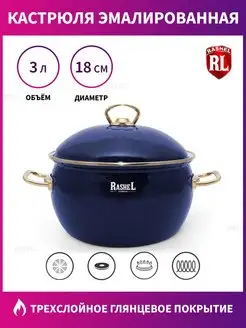Эмалированная посуда торговой марки Рашель выполнена из стали высокого качества с глянцевым эмалированным покрытием внутри и снаружи. Внешние стенки декорированы рисунками.