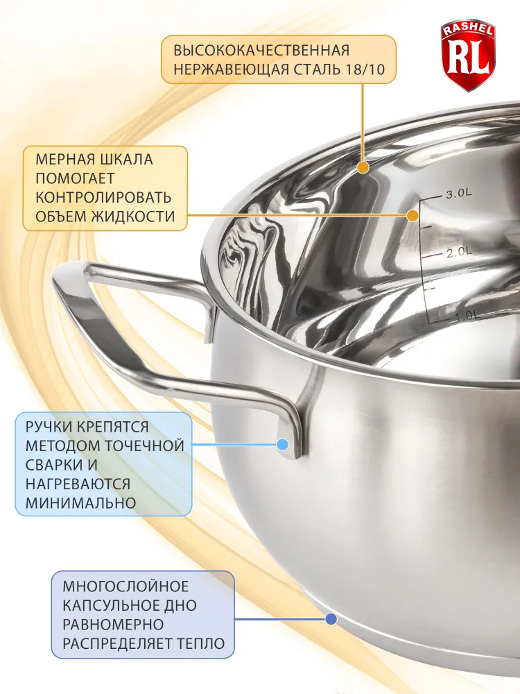 Совместимые плиты: Для газовых плит, Для стеклокерамических плит, Для электрических плит, Для индукционных плит