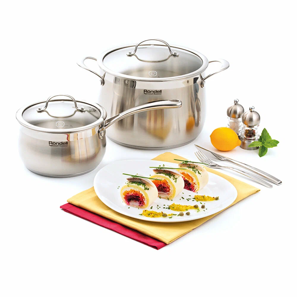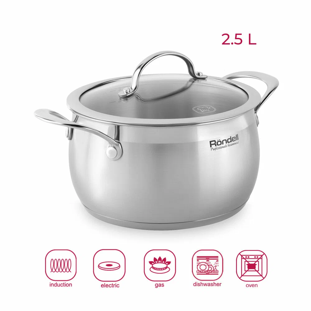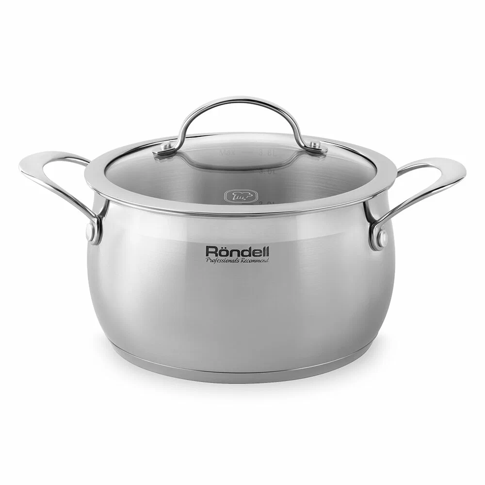 многослойное дно; мерная шкала; материал крышки: стекло; материал ручек: сталь