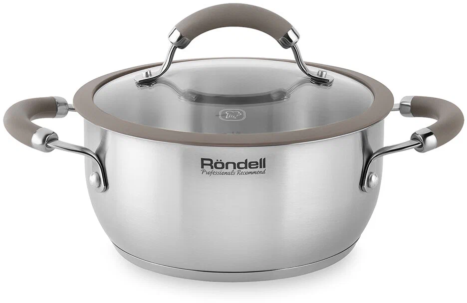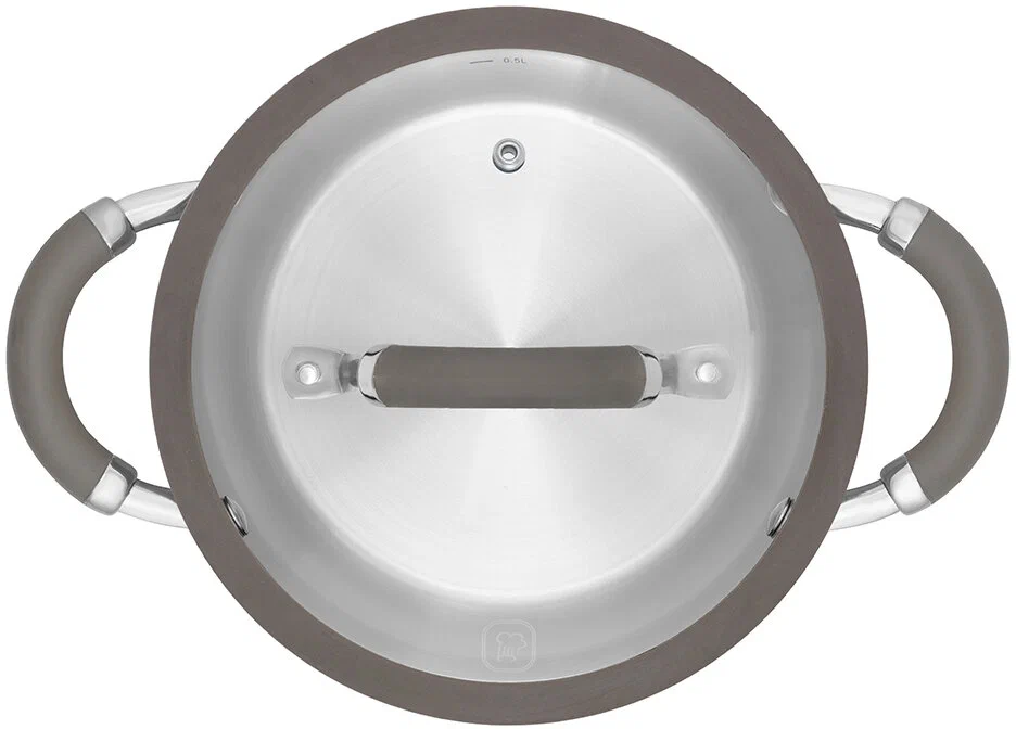 многослойное дно; мерная шкала; материал крышки: стекло; материал ручек: сталь с силиконовым покрытием