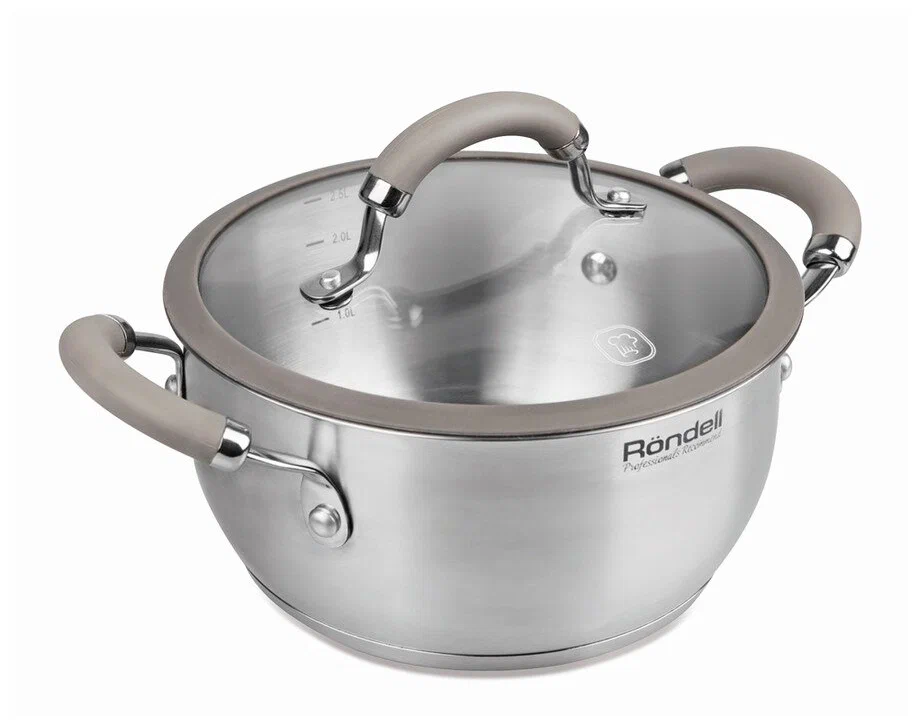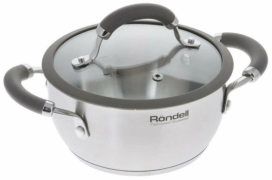 многослойное дно; мерная шкала; материал крышки: стекло; материал ручек: сталь с силиконовым покрытием