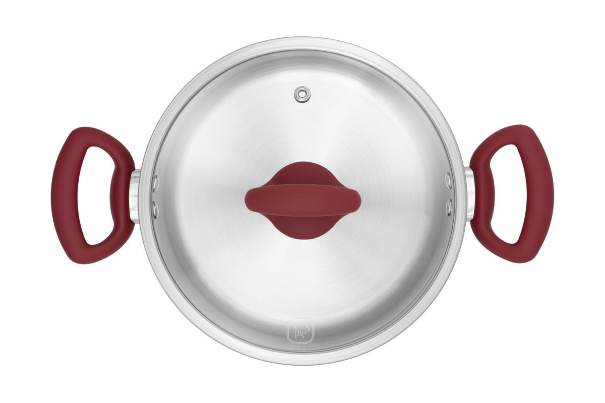 Благодаря высоким бортам кастрюля вмещает много продуктов, что удобно при приготовлении блюд для большой семьи или гостей.