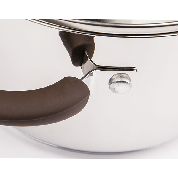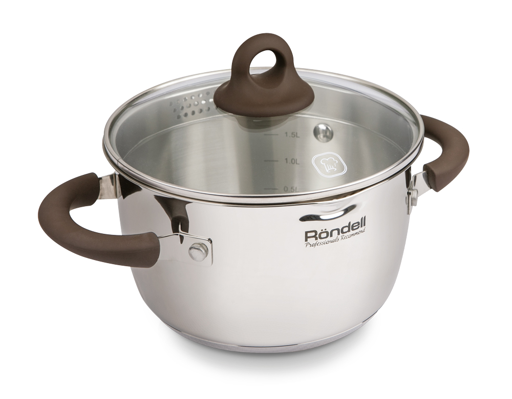 Комбинированная крышка из термостойкого стекла и ободком из нержавеющей стали для удобного слива жидкости (2 диаметра отверстий)