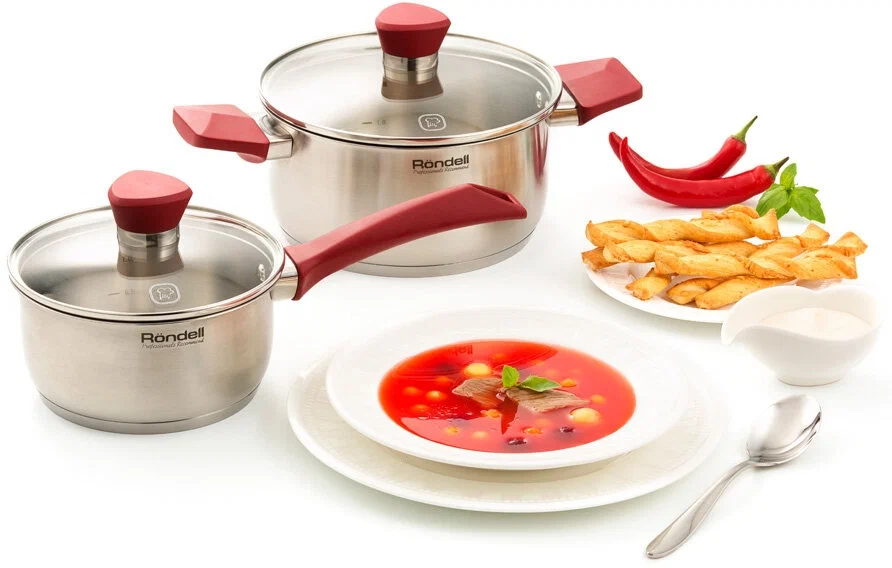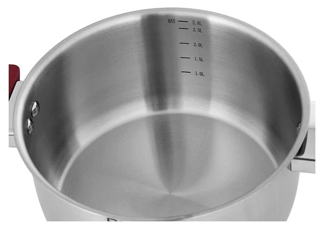многослойное дно; мерная шкала; материал крышки: стекло; материал ручек: бакелит