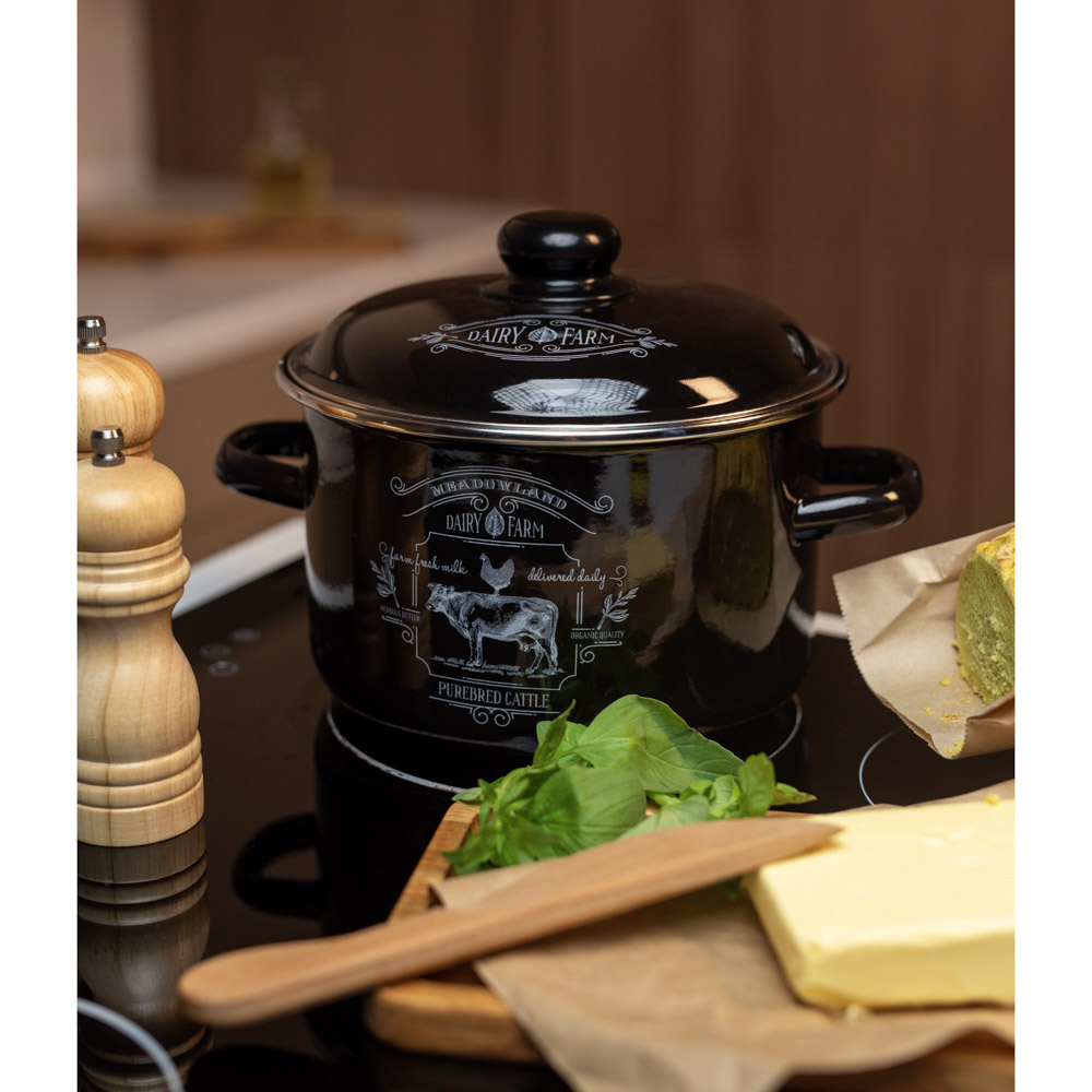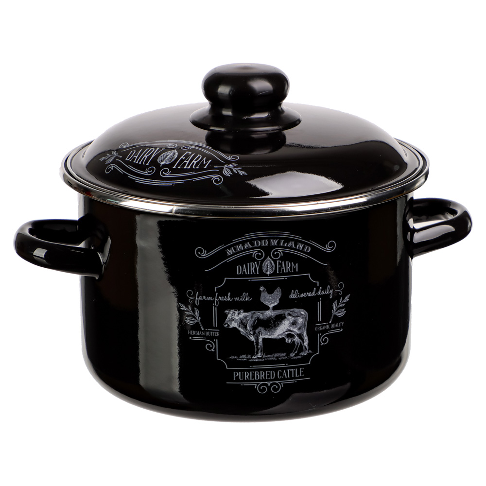 Эмалированная кастрюля «Ранчо» объемом 2 л сочетает в себе стиль и качество. Черная кастрюля смотрится элегантно и самобытно, гармонично вписываясь в интерьер современной кухни любого стиля. Качественное эмалированное покрытие не подвержено сколам и истиранию. Оптимальный объем позволяет готовить любые блюда, включая супы и холодцы. Блюда в кастрюле не окисляются и сохраняют свой естественный натуральный вкус.