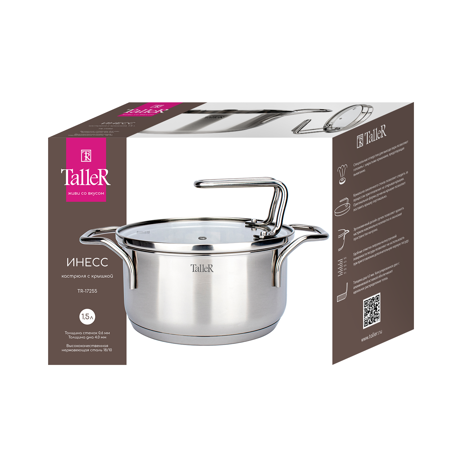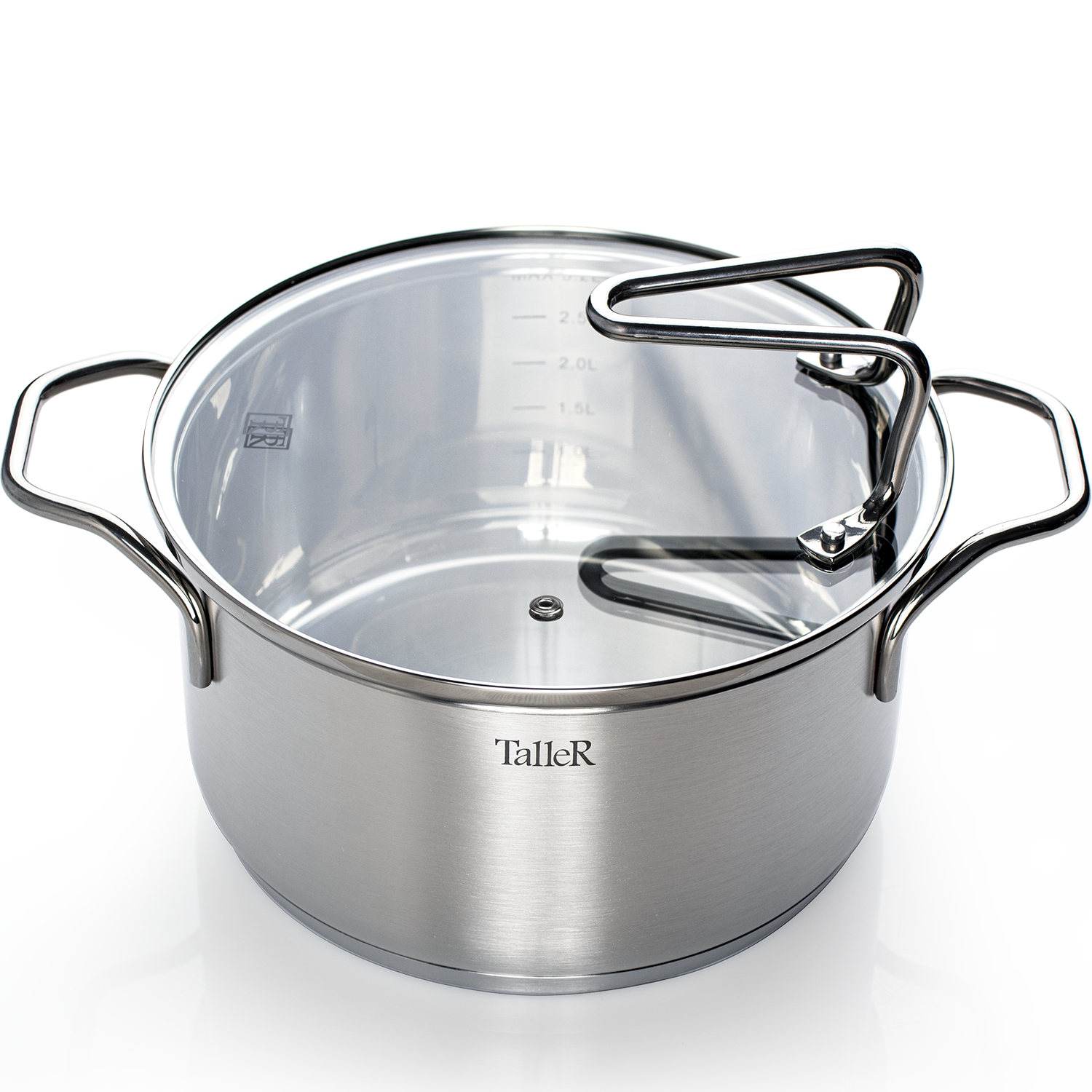 Кастрюля выполнена из нержавеющей стали - 18/10. Капсулированное дно.