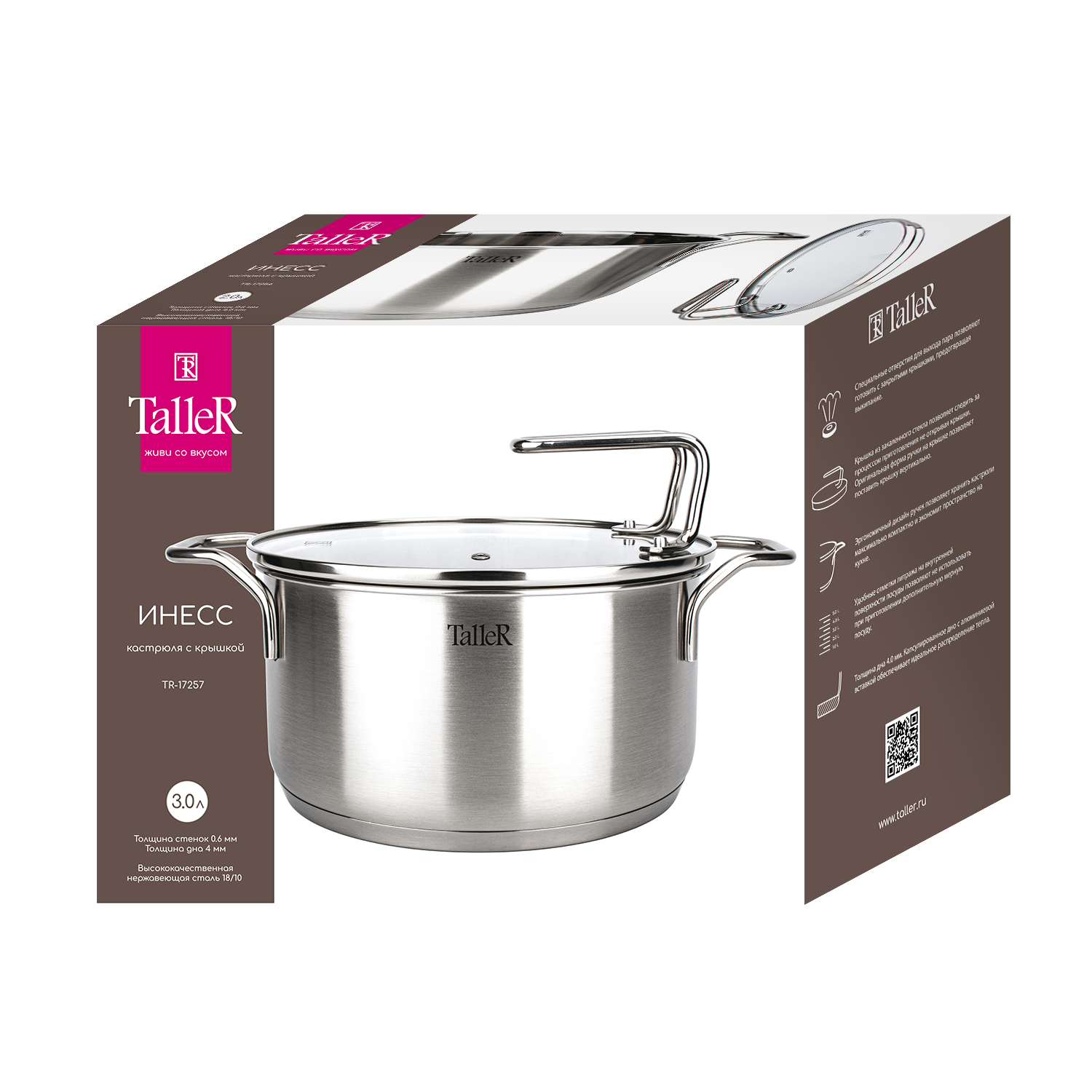 Кастрюля выполнена из нержавеющей стали - 18/10. Капсулированное дно.