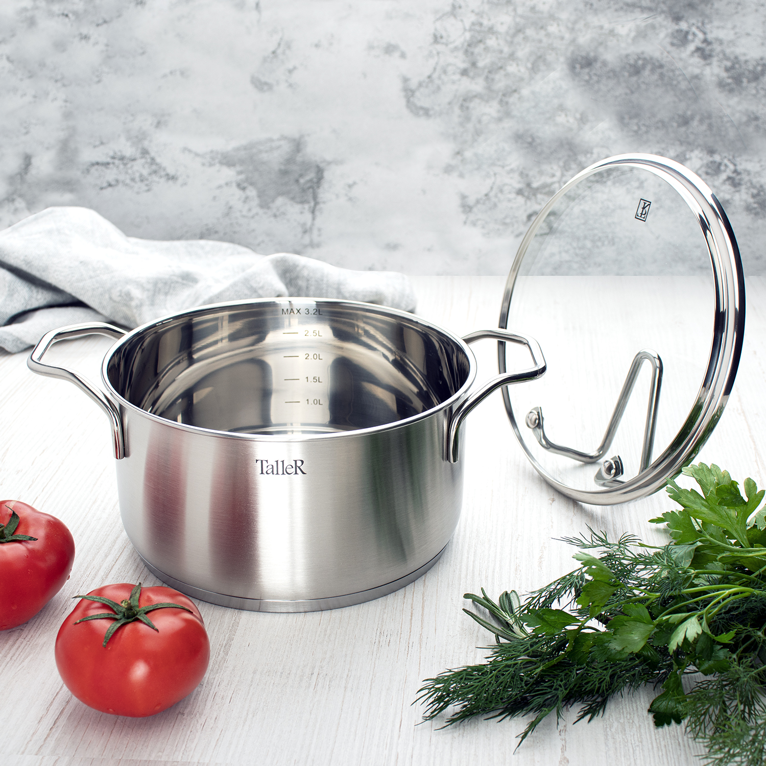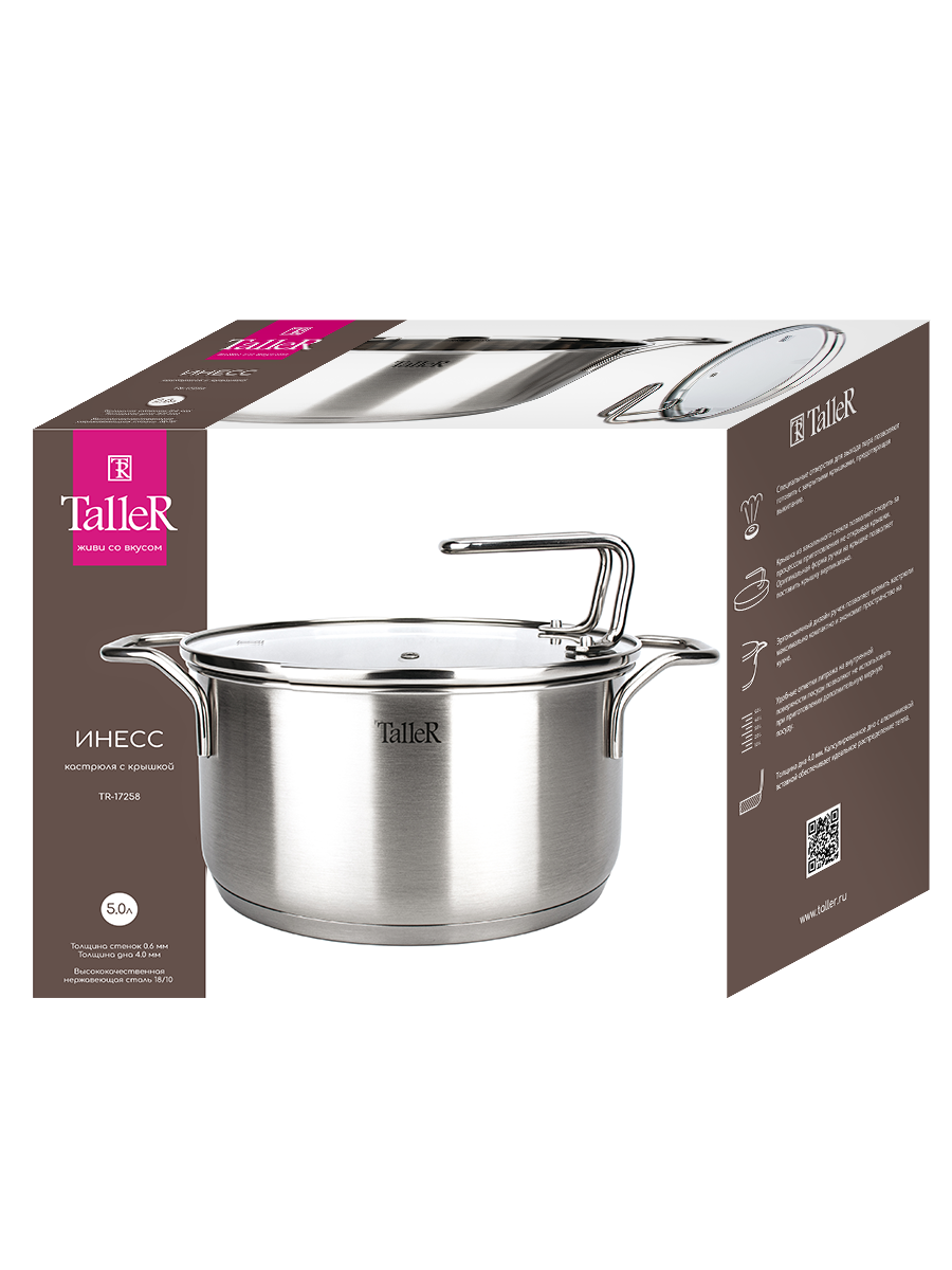 Кастрюля выполнена из нержавеющей стали - 18/10. Капсулированное дно.