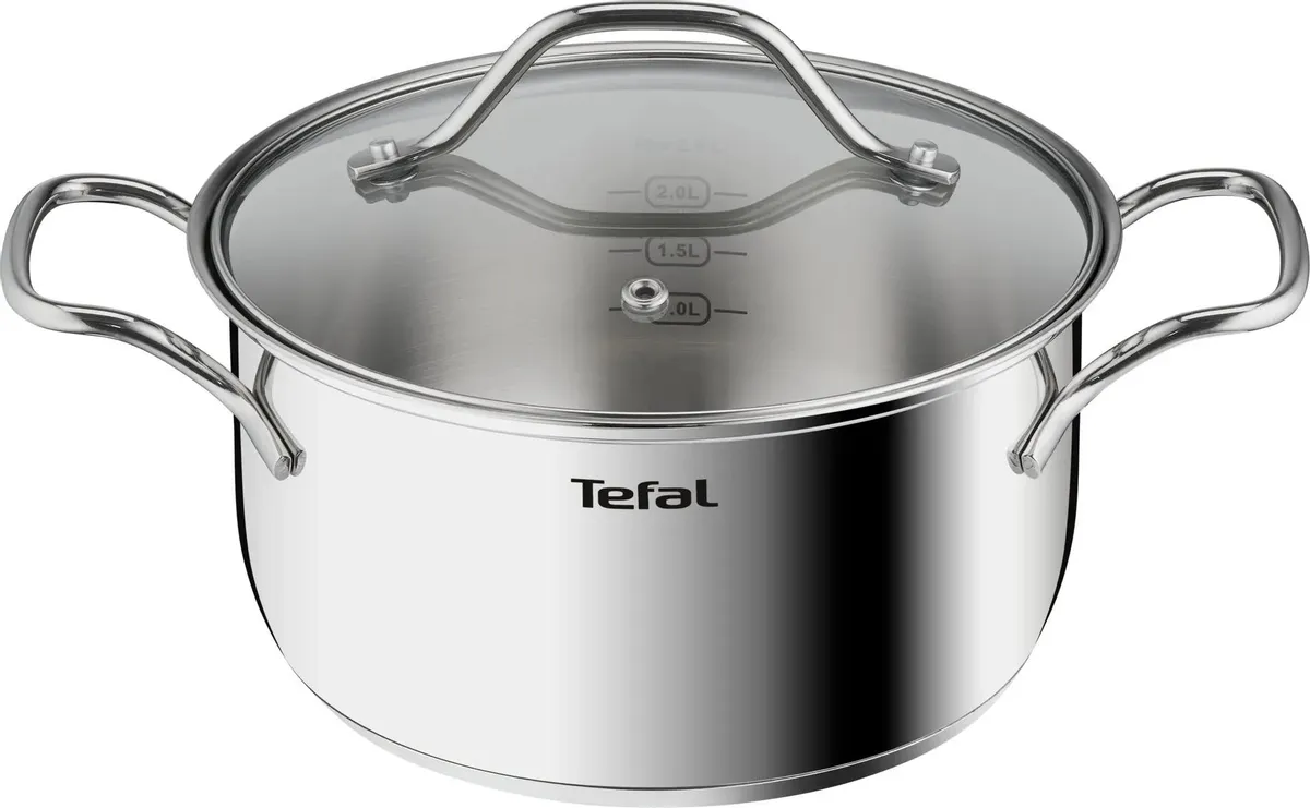 Кастрюля со стеклянной крышкой 20 см из нержавеющей стали объемом 2,9 литра, подходит на все виды плит, в т. ч. индукционных. Можно мыть в посудомоечной машине. Имеет удобные ручки, внутри кастрюли есть мерная шкала, крышка с паровыпуском, двойное капсульное дно. Кастрюля продается в индивидуальной упаковке.