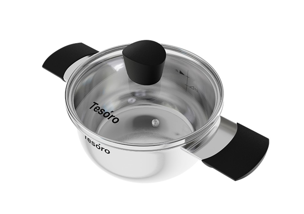 Комбинированная крышка из термостойкого стекла и коррозионностойкой стали оснащена отверстием для выпуска пара.