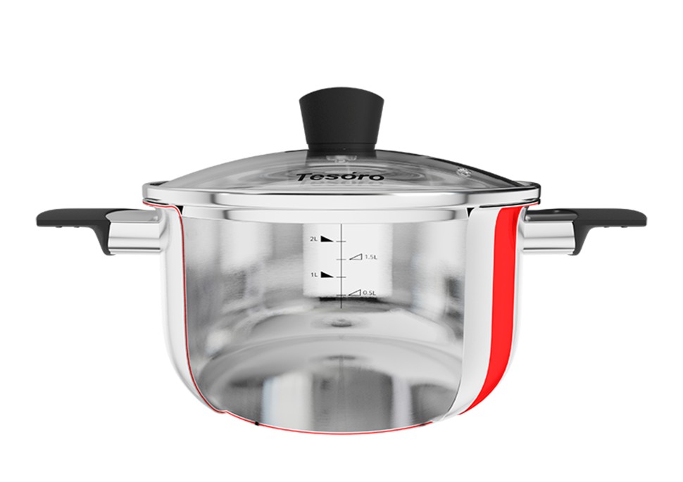 Средний слой – алюминий. Этот материал обладает отличной теплопроводимостью, благодаря чему тепло быстро распределяется по всей поверхности кастрюли от дна до верха.