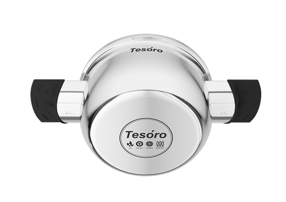 Наружный слой – коррозионностойкая (нержавеющая) сталь марки 430 с магнитопроводящими свойствами, что позволяет использовать посуду для приготовления на индукционных плитах.