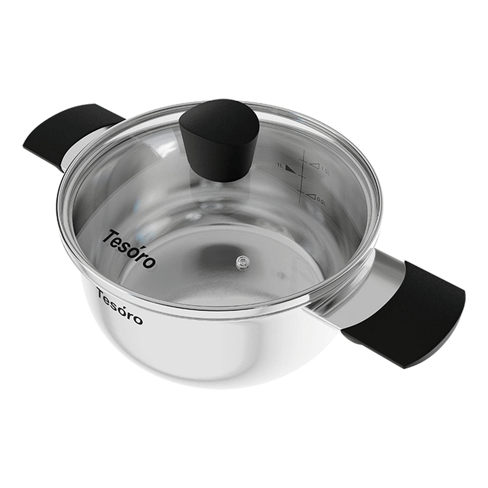 Комбинированная крышка из термостойкого стекла и коррозионностойкой стали оснащена отверстием для выпуска пара.
