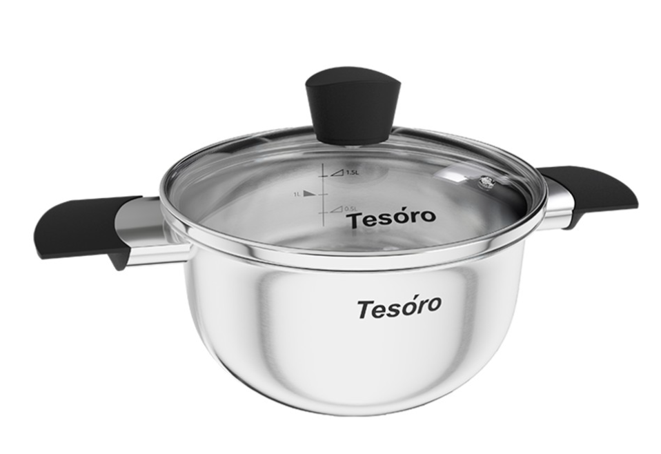 Средний слой – алюминий. Этот материал обладает отличной теплопроводимостью, благодаря чему тепло быстро распределяется по всей поверхности кастрюли от дна до верха.