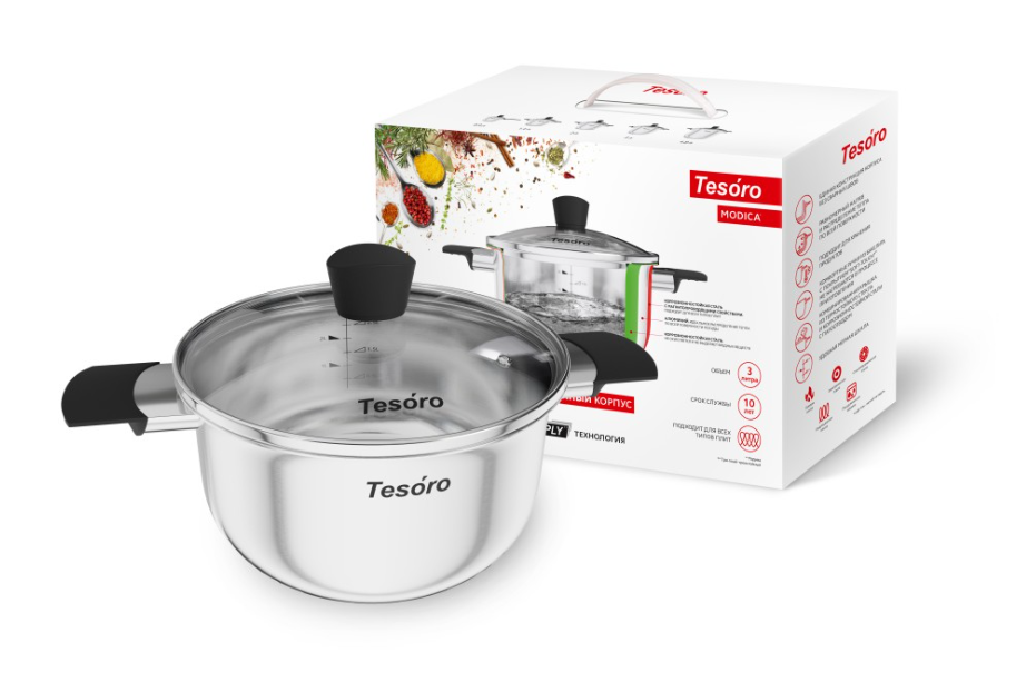 Наружный слой – коррозионностойкая (нержавеющая) сталь марки 430 с магнитопроводящими свойствами, что позволяет использовать посуду для приготовления на индукционных плитах.