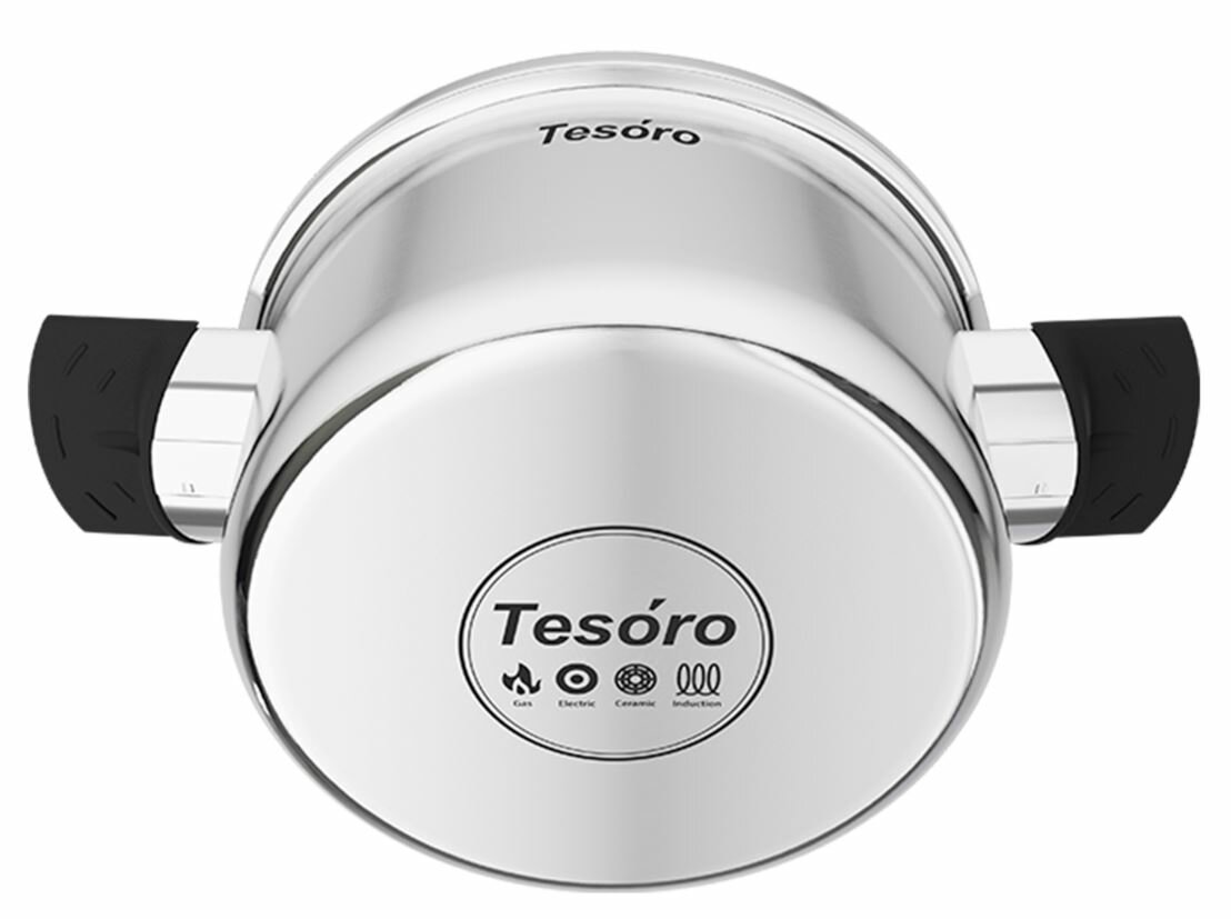 Наружный слой – коррозионностойкая (нержавеющая) сталь марки 430 с магнитопроводящими свойствами, что позволяет использовать посуду для приготовления на индукционных плитах.
