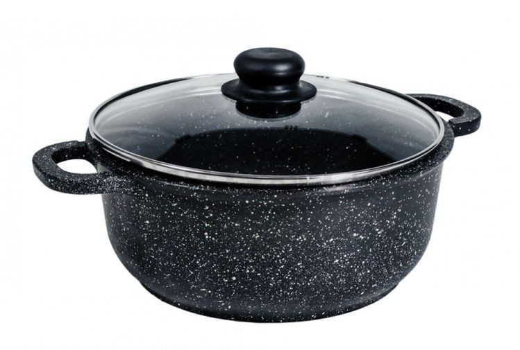 Кастрюля внутри и снаружи имеет черный или коричневый оттенок с текстурой каменной крошки; Толщина дна от 5мм, а толщина стенок от 3,5мм; Сделана из высококачественного алюминия; Имеется проточенное дно для более быстрого и равномерного прогрева, а так же для лучшего прилегания к поверхности. Подходит для использования в посудомоечной машине.