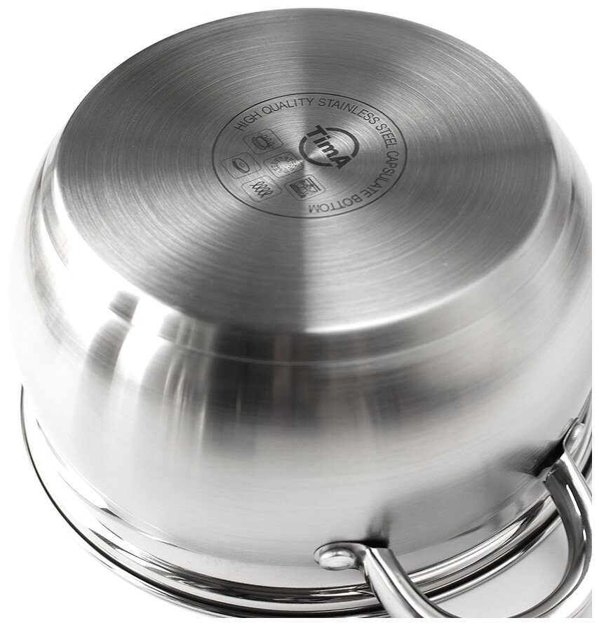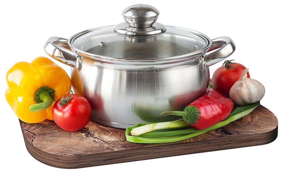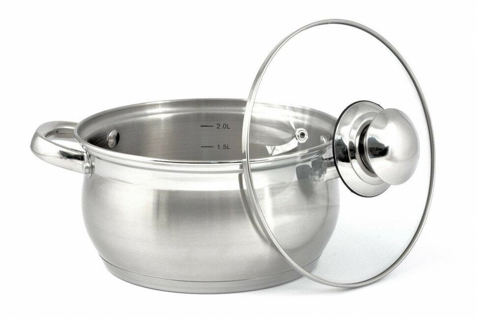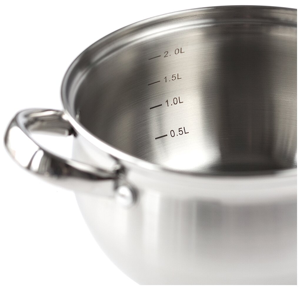 многослойное дно; мерная шкала; материал крышки: стекло; материал ручек: сталь