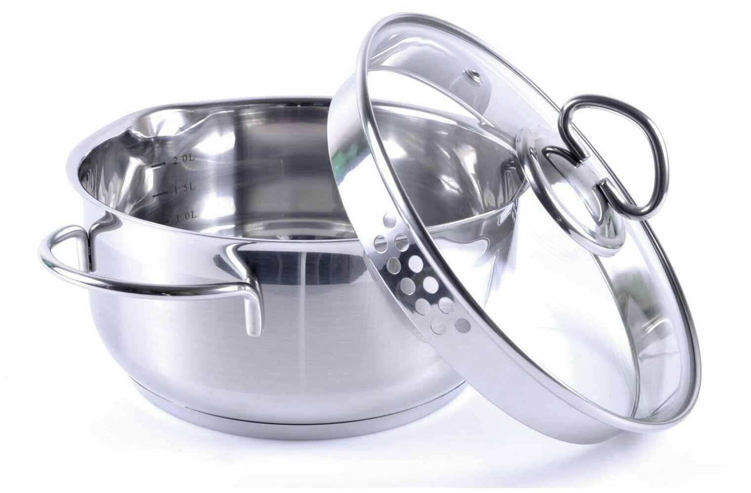 многослойное дно; мерная шкала: есть; материал крышки: стекло; материал ручек: сталь