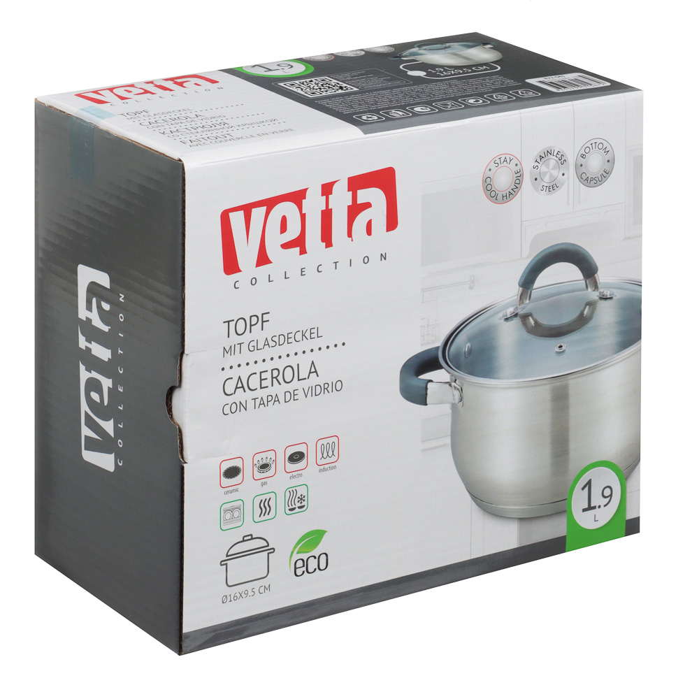 Посуда из нержавеющей стали не окисляется, материал не впитывает и не выделяет запахи, что положительно влияет на вкус пищи. Идеально подходит для готовки и длительного хранения в холодильнике. Посуда из нержавеющей стали имеет высокую прочность и экологически безопасна. Кастрюли Vetta — это новое поколение кухонной утвари, с которой готовка проходит быстрее и качественнее. Вы не только экономите свое время, но и газ или электричество.