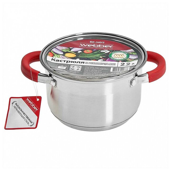 Кастрюля подходит для приготовления блюд на газовых, чугунных, галогеновых, стеклокерамических и индукционных конфорках. Модель оснащена корпусом из металла с антикоррозийными свойствами, термосберегающим капсульным дном и ручками с покрытием из бакелита. В комплект входит крышка с клапаном для выпуска пара. Допустима мойка в посудомоечной машине. Полезный объем составляет 2,2 л. Изделие выполнено в серебристом цвете.