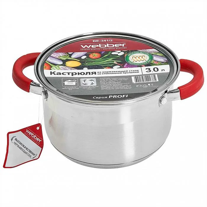 Кастрюля подходит для приготовления блюд на газовых, чугунных, галогеновых, стеклокерамических и индукционных конфорках. Модель оснащена корпусом из металла с антикоррозийными свойствами, термосберегающим капсульным дном и ручками с покрытием из бакелита. В комплект входит крышка с клапаном для выпуска пара. Допустима мойка в посудомоечной машине. Полезный объем составляет 3 л. Изделие выполнено в серебристом цвете.