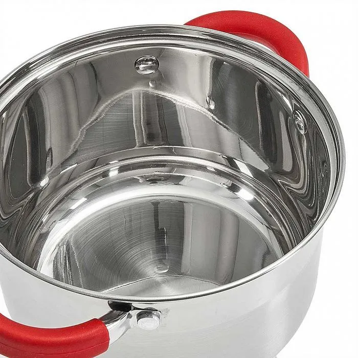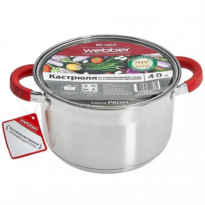 Кастрюля подходит для приготовления блюд на газовых, чугунных, галогеновых, стеклокерамических и индукционных конфорках. Модель оснащена корпусом из металла с антикоррозийными свойствами, термосберегающим капсульным дном и ручками с покрытием из бакелита. В комплект входит крышка с клапаном для выпуска пара. Допустима мойка в посудомоечной машине. Полезный объем составляет 4 л. Изделие выполнено в серебристом цвете.