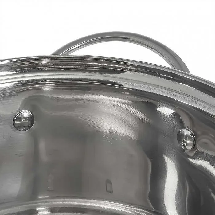 Кастрюля подходит для приготовления блюд на газовых, чугунных, галогеновых, стеклокерамических и индукционных конфорках. Модель оснащена корпусом из металла с антикоррозийными свойствами и термосберегающим капсульным дном. В комплект входит крышка с клапаном для выпуска пара. Допустима мойка в посудомоечной машине. Полезный объем составляет 3,7 л. Изделие выполнено в серебристом цвете.