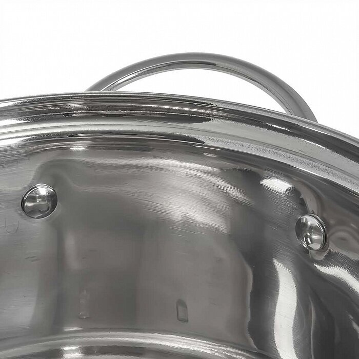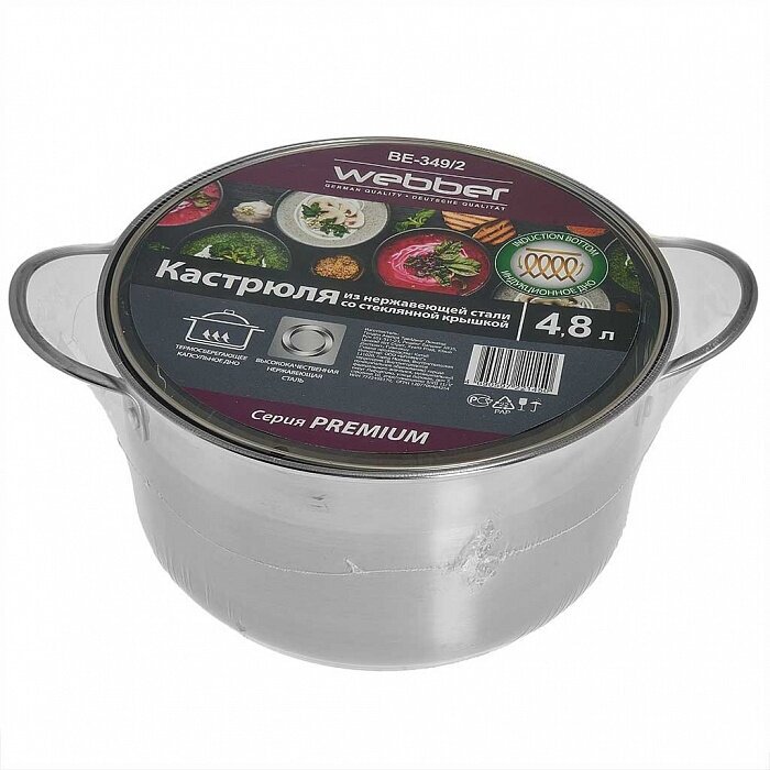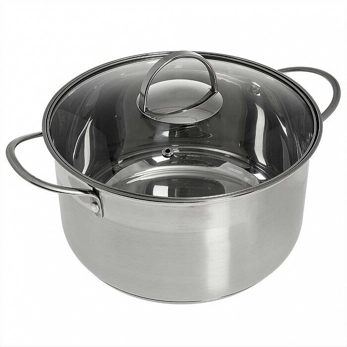 Кастрюля подходит для приготовления блюд на газовых, чугунных, галогеновых, стеклокерамических и индукционных конфорках. Модель оснащена корпусом из металла с антикоррозийными свойствами и термосберегающим капсульным дном. В комплект входит крышка с клапаном для выпуска пара. Допустима мойка в посудомоечной машине. Полезный объем составляет 4,8 л. Изделие выполнено в серебристом цвете.