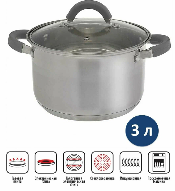 Кастрюля предназначена для приготовления еды.