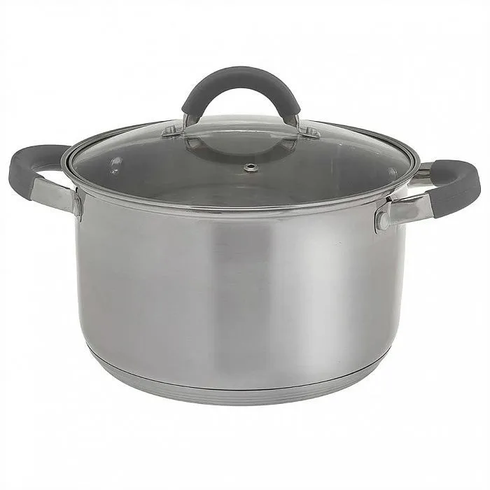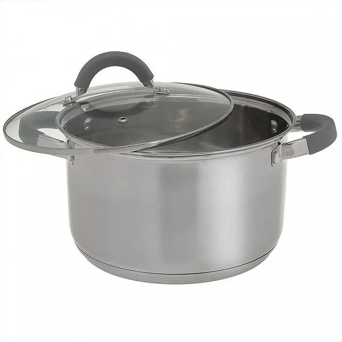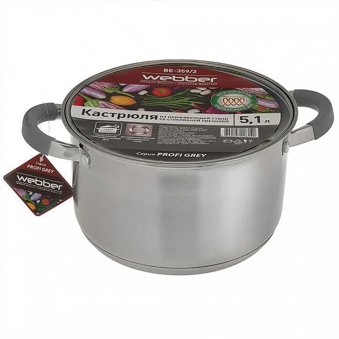 Кастрюля подходит для приготовления блюд на газовых, чугунных, галогеновых, стеклокерамических и индукционных конфорках. Модель оснащена корпусом из металла с антикоррозийными свойствами, термосберегающим капсульным дном и ручками с покрытием из бакелита. В комплект входит крышка с клапаном для выпуска пара. Допустима мойка в посудомоечной машине. Полезный объем составляет 5,2 л. Изделие выполнено в серебристом цвете.