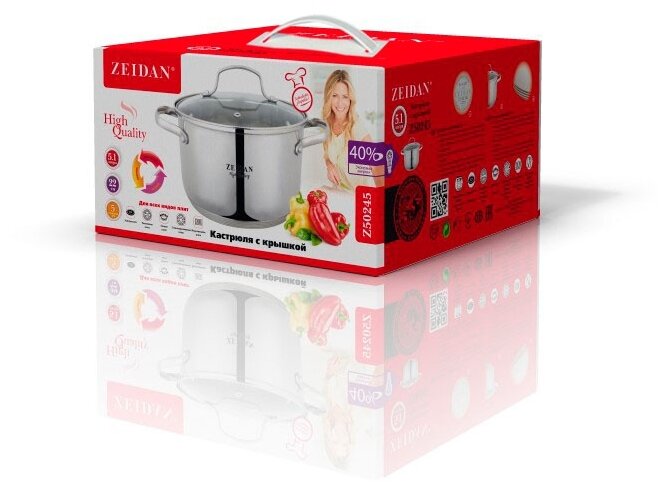 - многослойное дно; мерная шкала: есть; материал крышки: стекло; материал ручек: сталь; Подарочная коробка с пластиковой ручкой