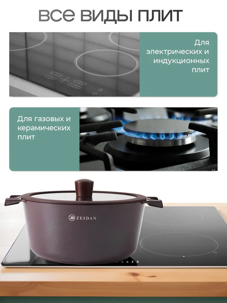 Подходит для всех видов кухонных плит;