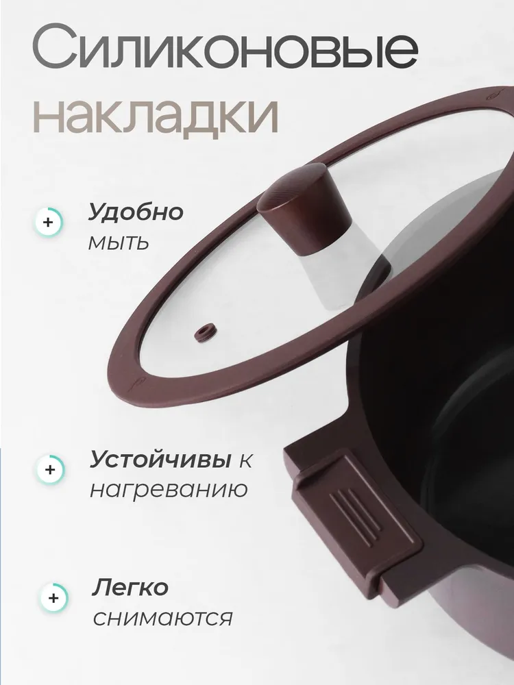 Жаропрочная стеклянная крышка с силиконовым ободом и деревянной ручкой;