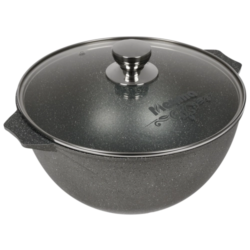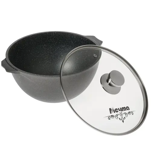 Казан Мечта Гранит ‒ удобная посуда для приготовления традиционных блюд на открытом огне и углях. Он выполнен в литом алюминиевом корпусе полусферической формы и содержит плоское дно.