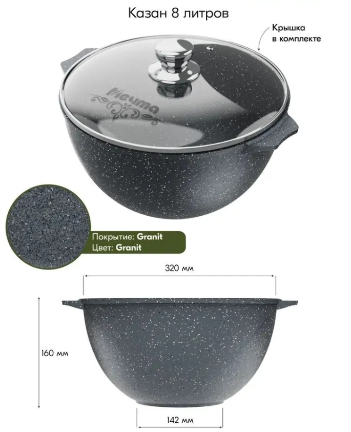 Казан используют при приготовлении повседневных и национальных блюд. Модель произведена из литого алюминия и выдерживает длительную эксплуатацию без потери потребительских свойств и первоначального внешнего вида. Антипригарное покрытие позволяет обжаривать овощи и мясо без добавления масла, а также исключает прилипание ингредиентов.