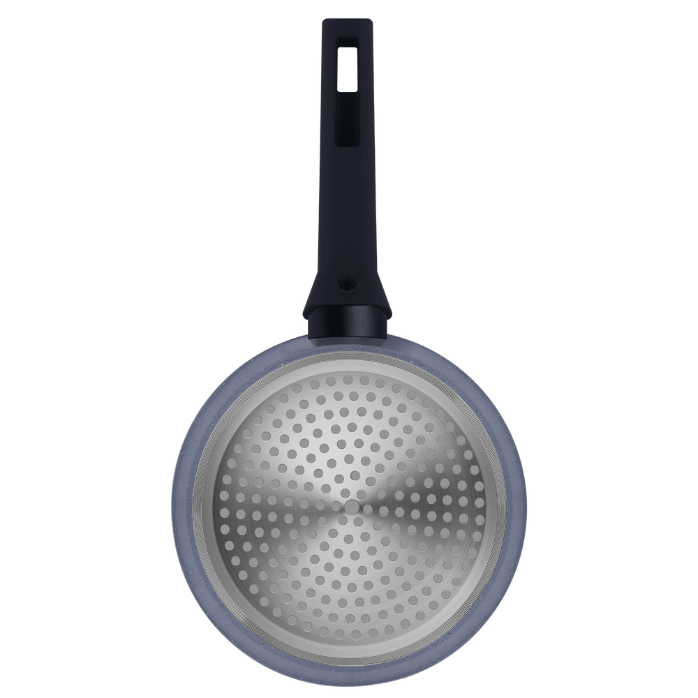 - Трехслойное антипригарное покрытие. Устойчивое к царапинам, полностью безопасное антипригарное покрытие, позволяет готовить блюда без использования большого количества масла. Не содержит свинец и кадмий, без PFOA.