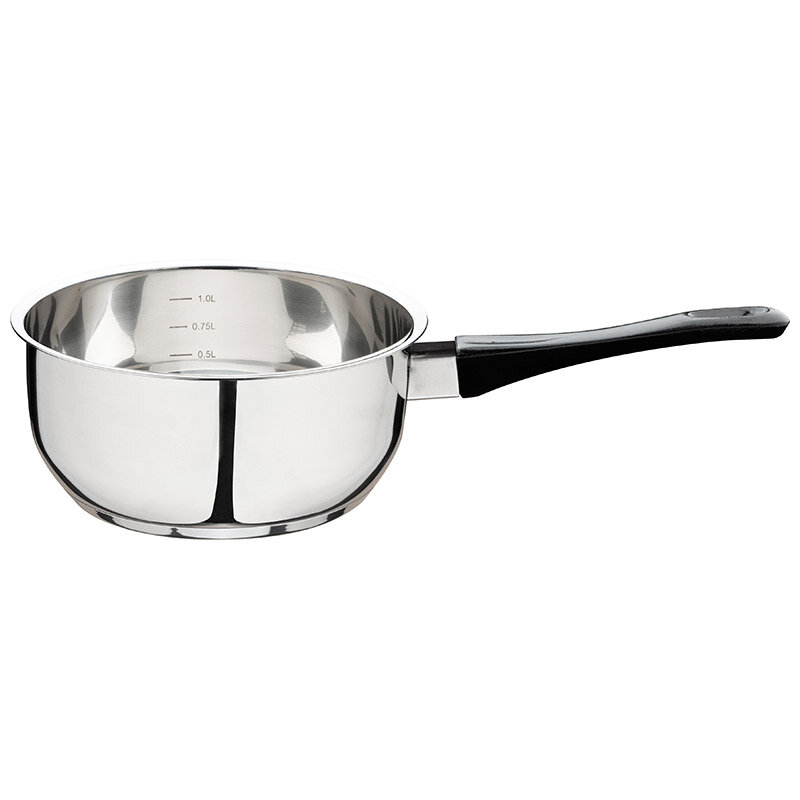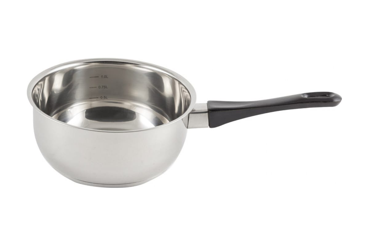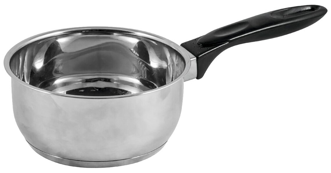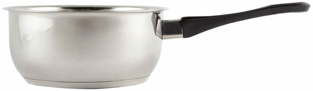 Ковш из нержавеющей стали с бакелитовой ручкой зеркальная полировка объем 1.4 л диаметр 16 см капсулированное дно предназначен для приготовления пищи.