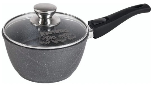 Ковш Мечта Гранит, 1,7 л, 18 см, со съемной ручкой оптимален для приготовления детского питания, соусов и кремов, каш, компотов или киселя, кипячения молока или воды. Специальное покрытие имеет антипригарные свойства, благодаря чему предотвращается прилипание ингредиентов. За счет оптимальной толщины дна посуды обеспечиваются равномерный нагрев и эффективное приготовление блюд. При необходимости ручку можно снять и использовать модель для запекания в духовом шкафу.