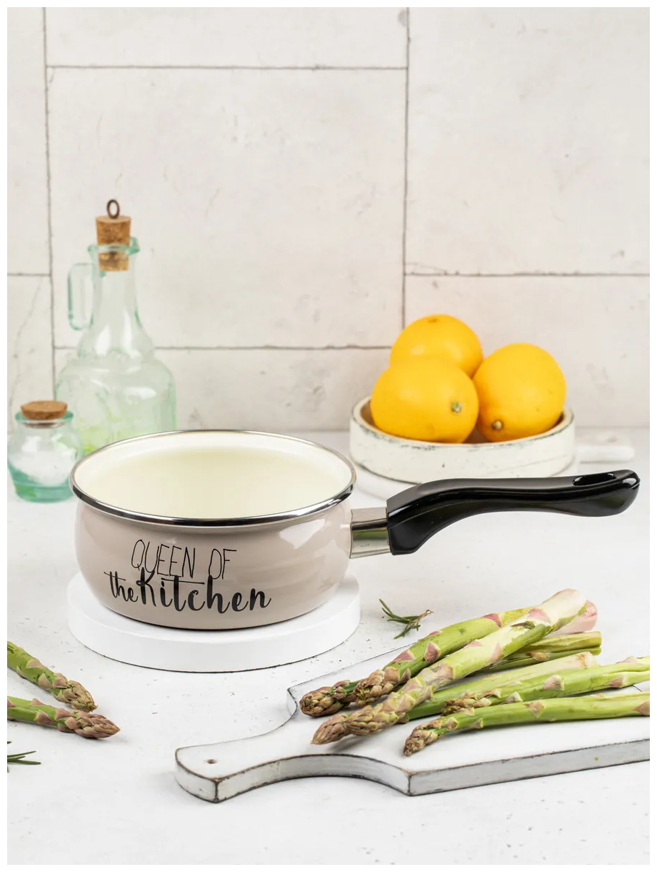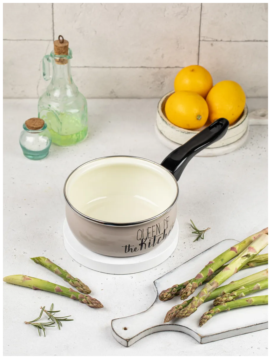черная не нагревающиеся ручка из бакелита, материал - эмалированная сталь, упаковка - подарочная